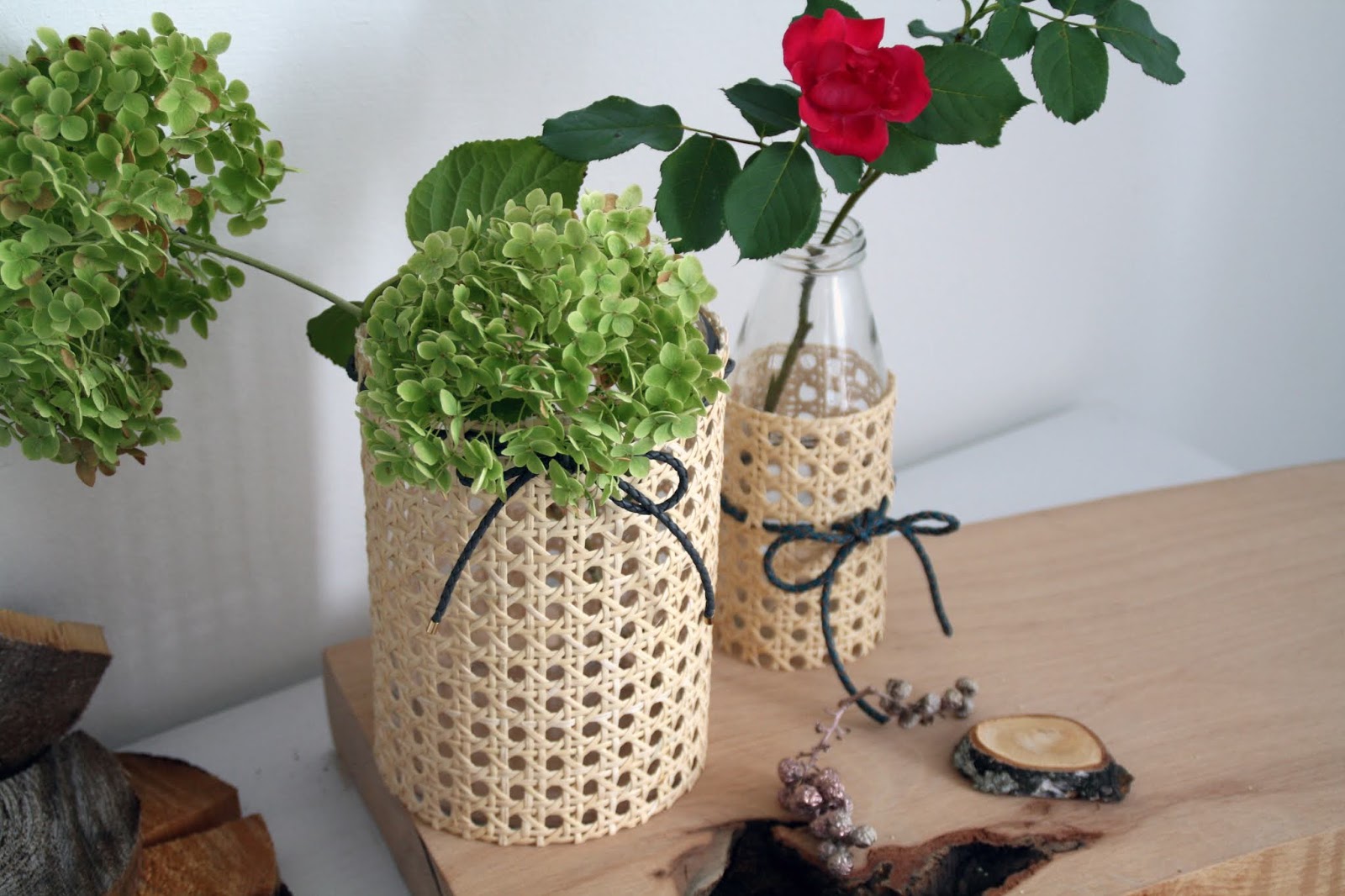 Ich habe nämlich heute mal wieder ein total schönes DIY-Projekt für Euch. Ich finde meine neuen Vasenhussen aus Wiener Geflecht und geflochtenem Lederband einfach wunderhübsch. Probiert es doch einfach mal selbst aus.